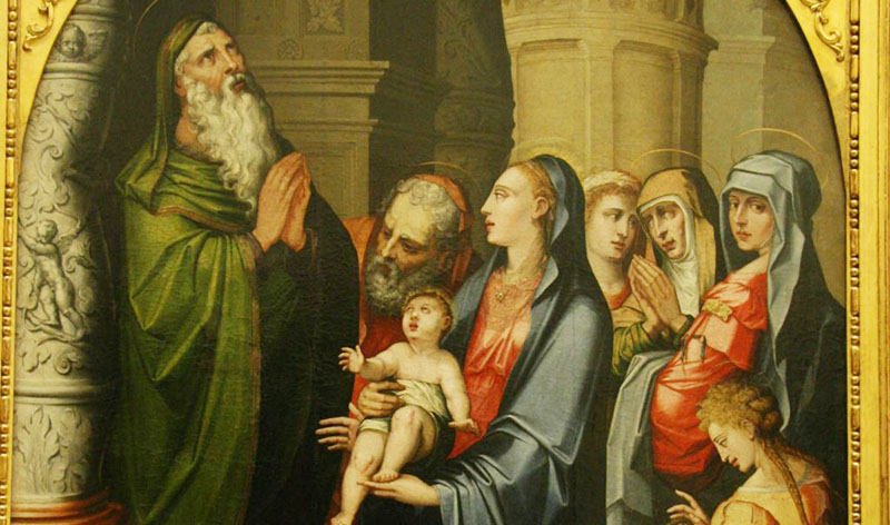 Ela cumpre o rito da apresentação e um profeta, Simeão, que era o profeta indicado por Deus para isso, atua para purificá-la, quer dizer, faz o rito com ela e recebendo o Menino nos braços, tem aquele cântico que começa assim: