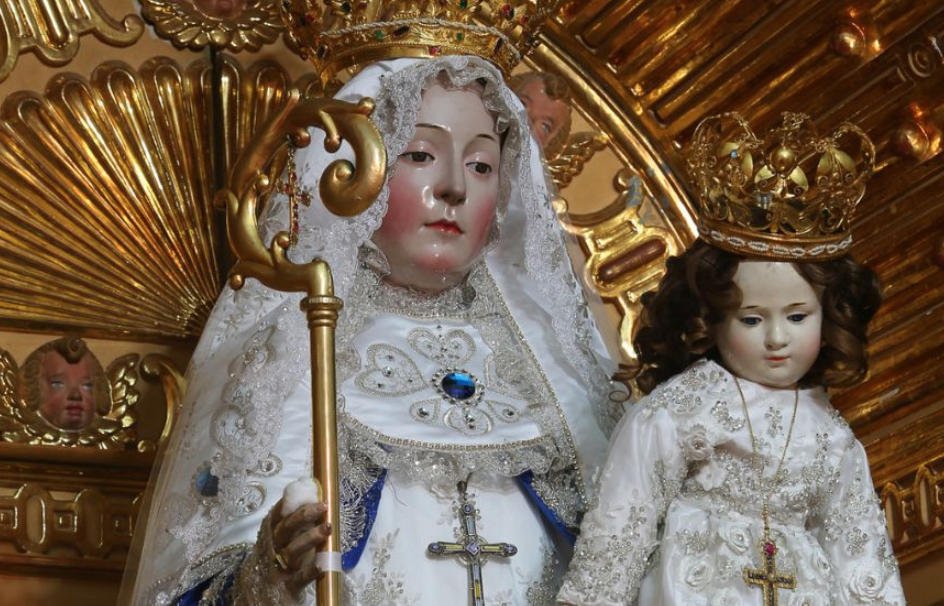 Ela traz triunfalmente seu Divino Filho, como quem diz: